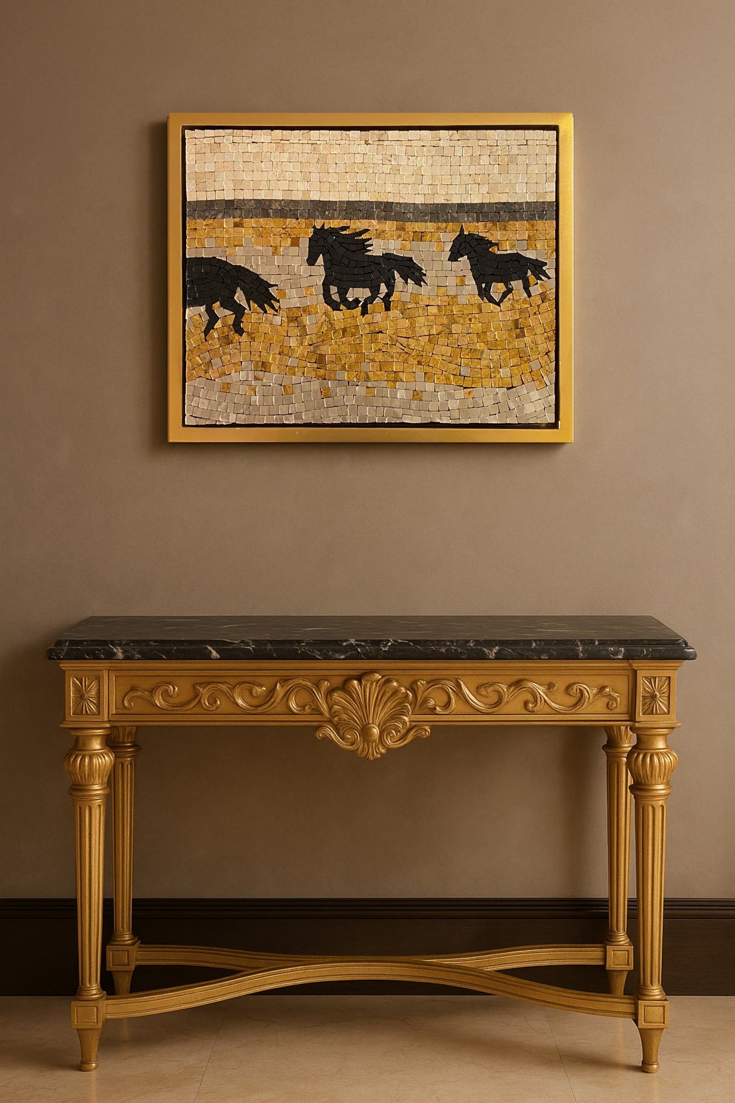 Each piece is handcrafted in stone and set in wooden frames. Browse by collection to find the mosaic that matches your space and story.